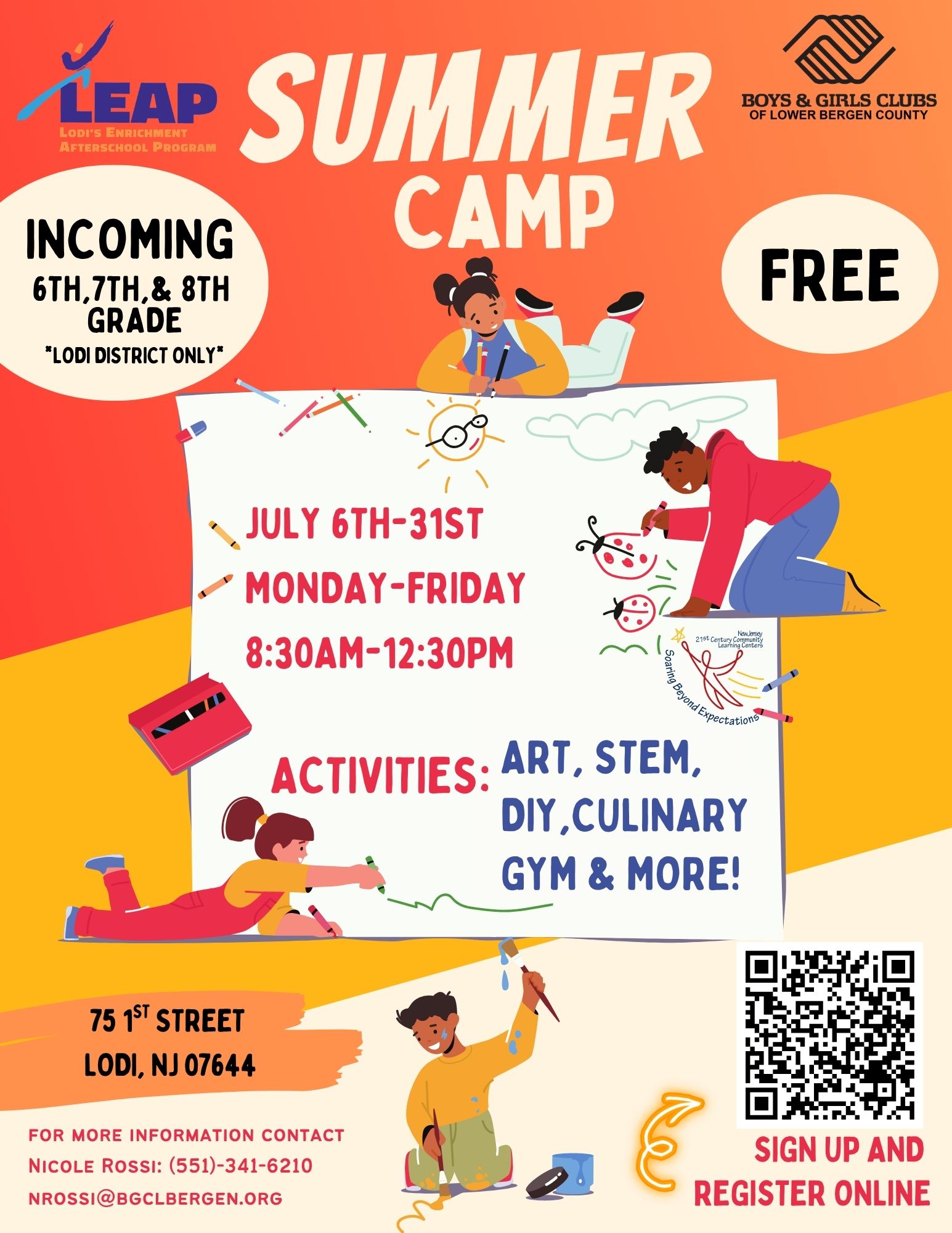 LEAP, Lodi’s Enrichment After School & Summer Program at Thomas Jefferson Middle School is brought to you by the Boys & Girls Club of Lodi and the Lodi Public Schools. LEAP is a STEAM (Science, Technology, Engineering, Art and Mathematics) themed program which is fully funded by a 21st Century Grant, and is only available to 100 students at Thomas Jefferson Middle School, in grades 6-8. LEAP is grounded in the Boys & Girls Clubs positive youth development strategy to make a positive impact in each child, by combining academic and enrichment programs.